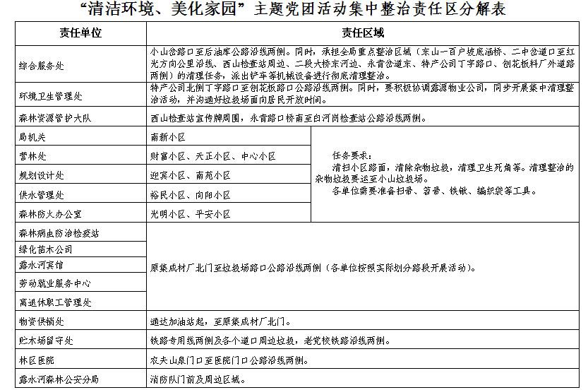 附件:“清潔環(huán)境、美化家園”主題黨團(tuán)活動(dòng)集中整治責(zé)任區(qū)分解表